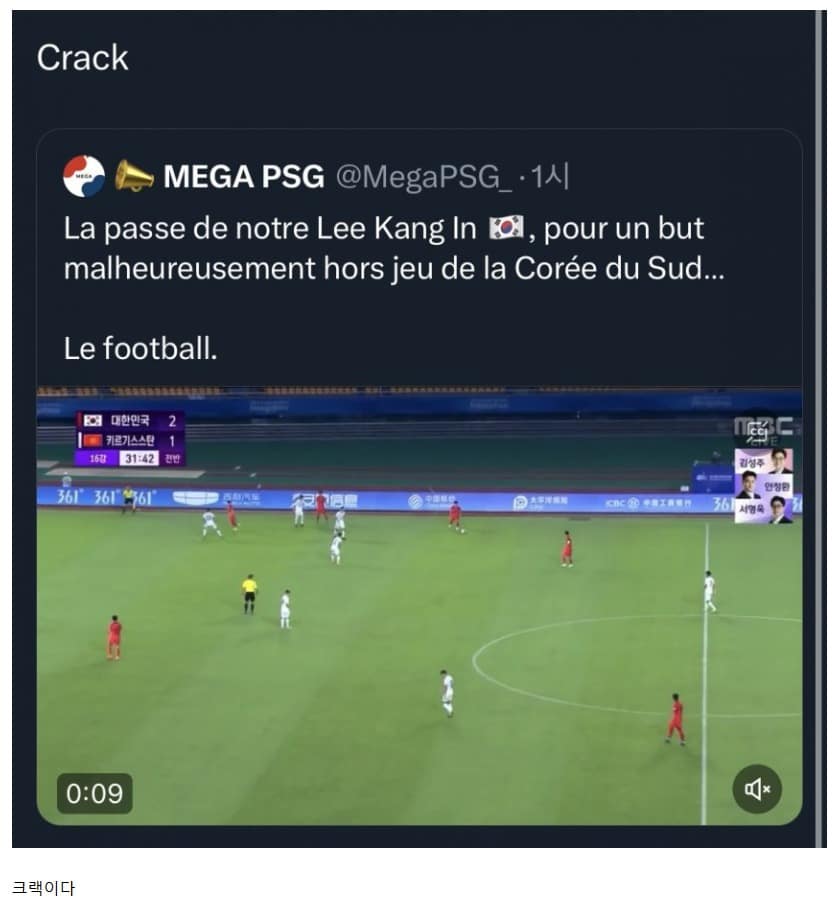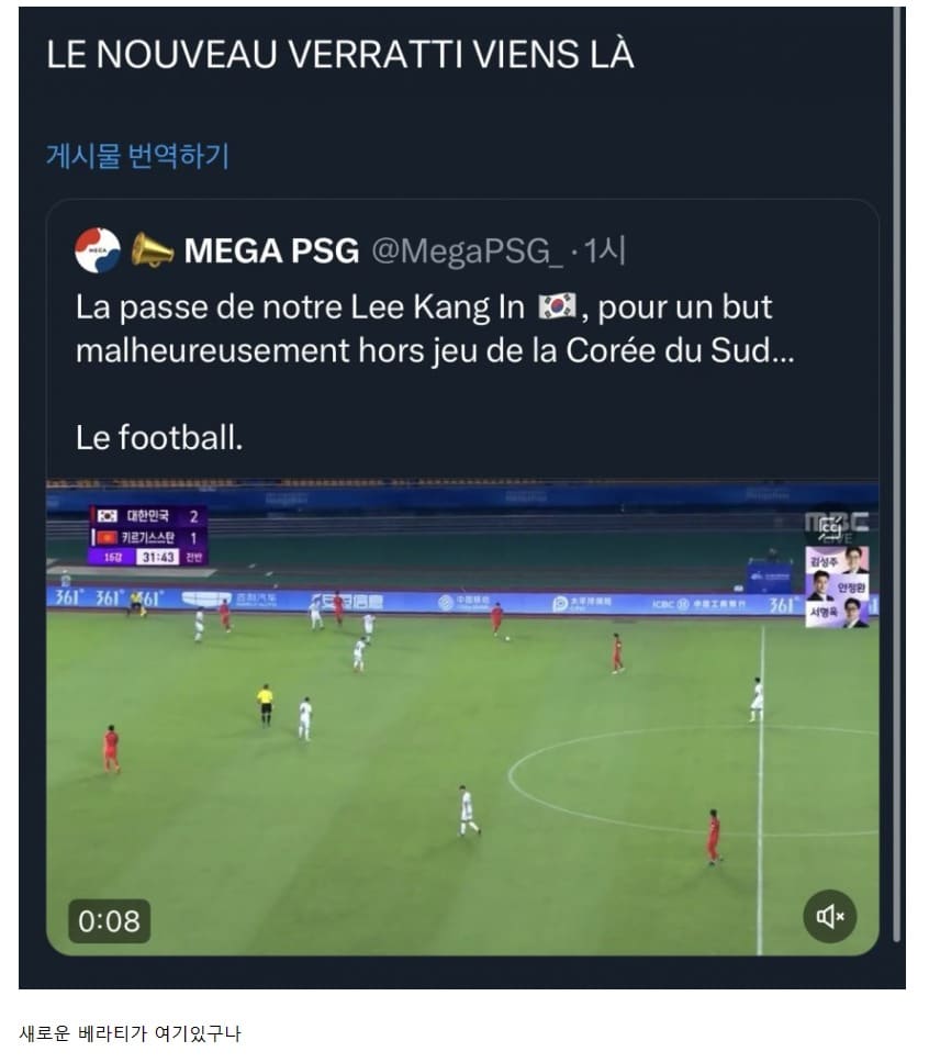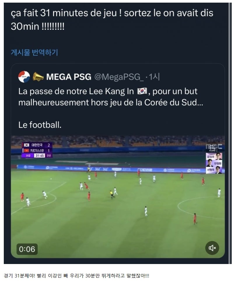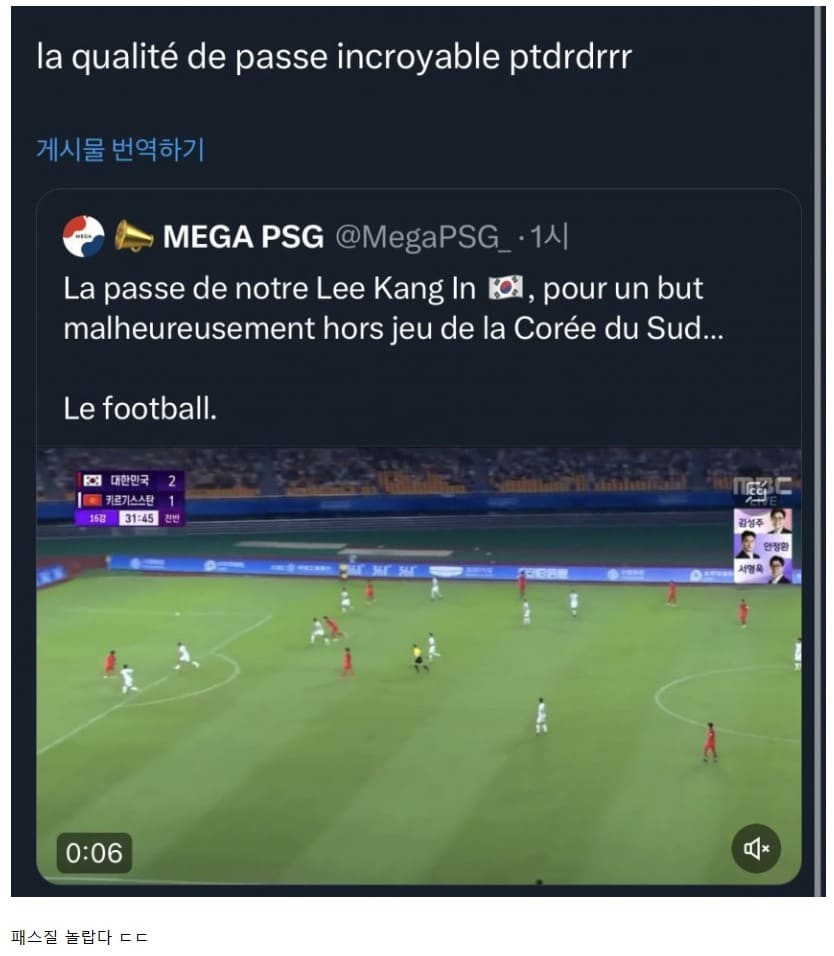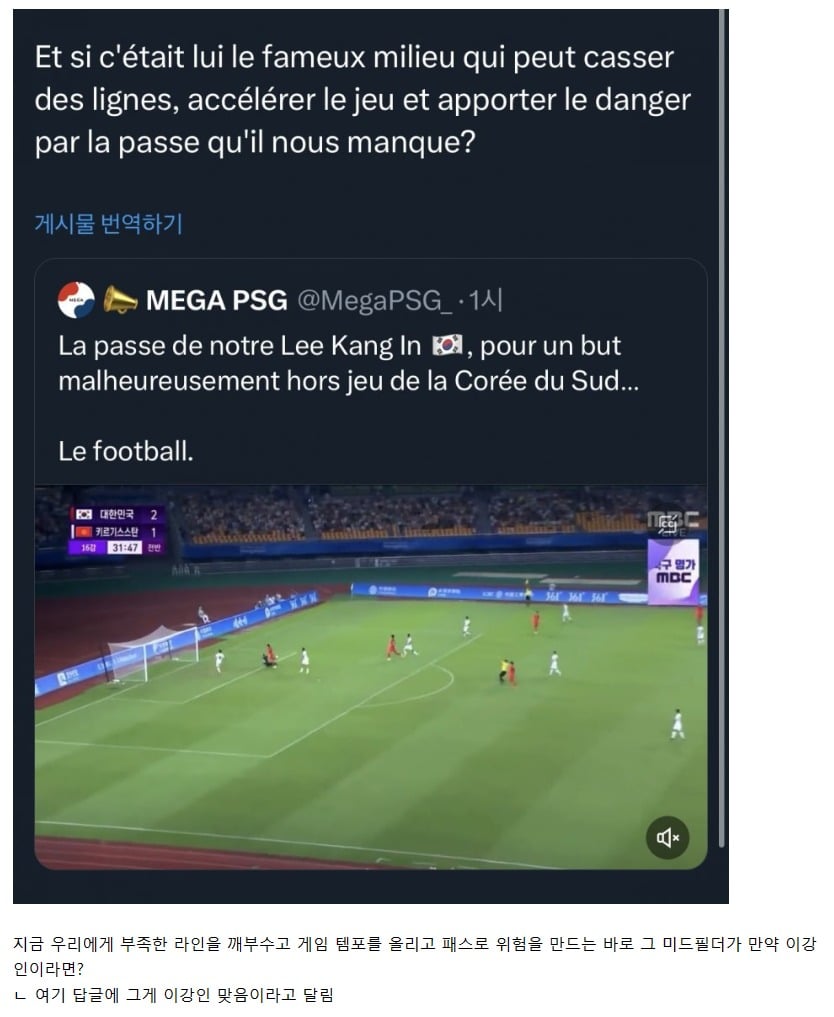 키르기스스탄전 이강인의 플레이 하나가 공유되며 PSG 현지팬들도 반응을 보였다.