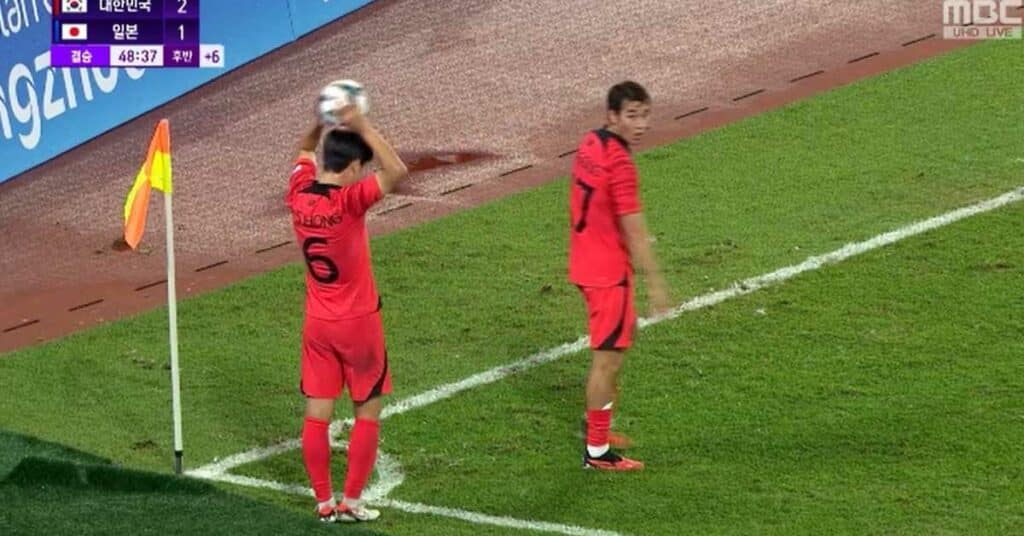 결승 한일전 후반 막판 스로인하는데 ‘송민규’ 활용해서 창의적으로 시간 끌어버리는 ‘홍현석’