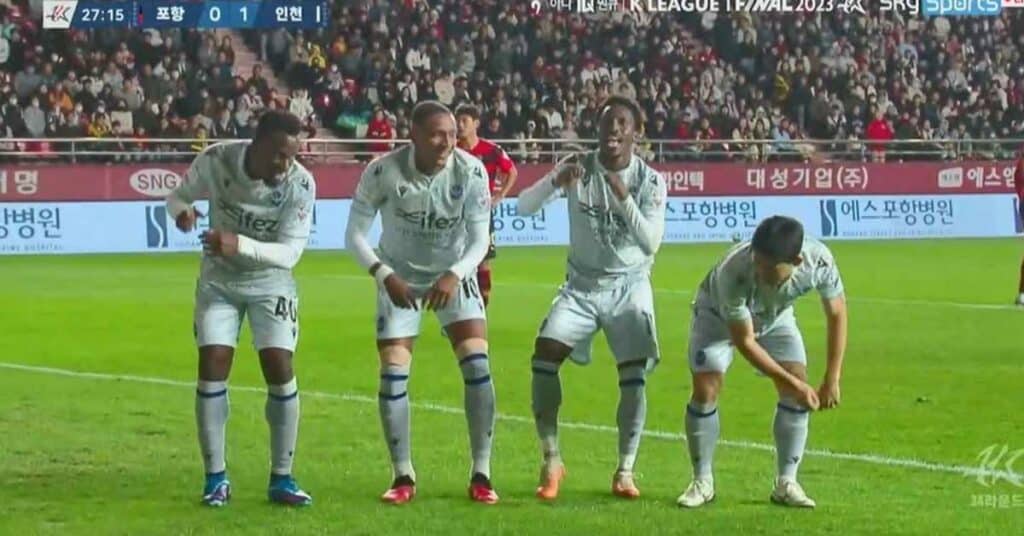 골넣고 빅맨 박았는데 바로 전 상황 때문에 통쾌한 복수가 돼버린 ‘인천 선수단’이기타2023년 10월 21일축구포항vs인천 K리그 경기에서 터진 포항 정재희의 선제골.득점 직후 정재희는 빅맨으로 기쁨을 표출했다.하지만 기쁨도 잠시.VAR 결과 오프사이드로 취소돼버린 득점.공교롭게 바로 얼마 뒤 터진 인천 제르소의 선제골.그러자 인천 선수단도 단체로 ㅋㅋㅋㅋㅋ하필 이게 또 포항 서포터석 앞에서 한 거라 복수처럼 돼버렸네 ㅋㅋㅋㅋ