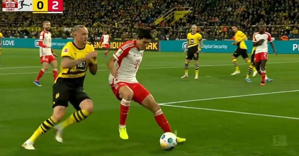 “축구 X같이 하네…” 공간 1도 안주며 등지다가 ‘볼프’에게 뒤에서 만근추 당해버리는 ‘김민재’