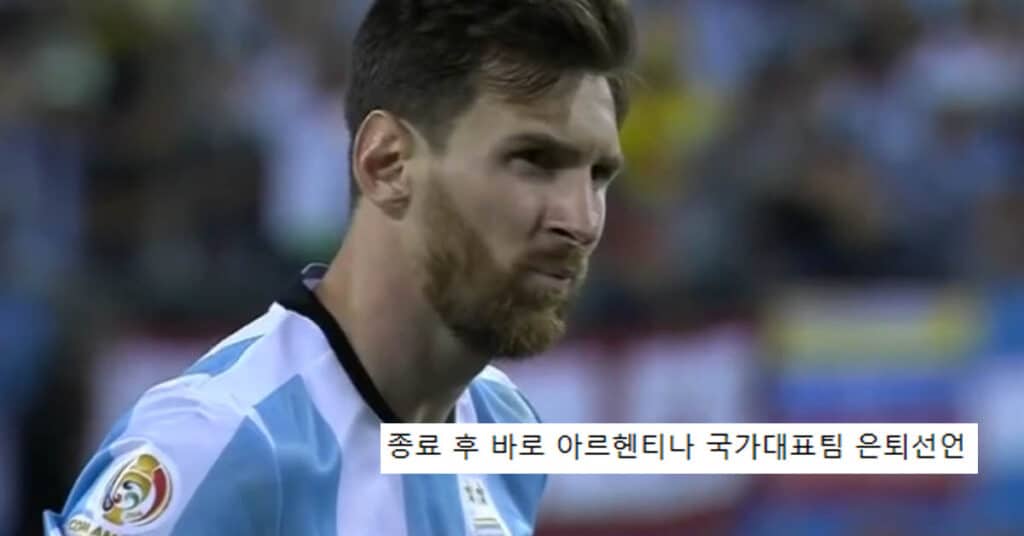 멘탈이 산산조각 박살나며 이례적으로 ‘메시’가 국가대표 은퇴를 선언해버린 사건이기타2023년 11월 10일축구2016 코파 아메리카 결승전에서 패배하면서 메이저 대회 3년 연속 준우승.결국 경기 종료 후 바로 아르헨티나 국가대표팀 은퇴 선언 ㄷㄷ