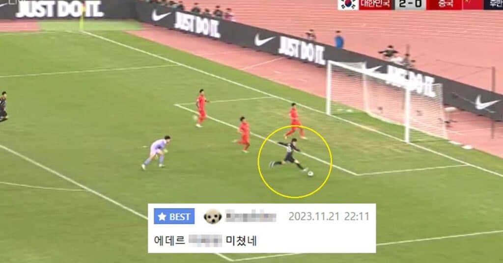 중국전에서 빈 골대로 슈팅했다가 커뮤에서 드립 대폭발하게 만들어버린 ‘이강인’의 플레이 수준