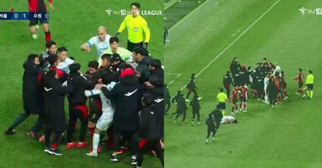 후반 추가시간, 선수들 뿐 아니라 코치진까지 모두 달려들며 아수라장이 돼버린 슈퍼매치 근황.gif이기타2023년 11월 26일축구슈퍼매치에서 후반 추가시간 프리킥을 얻은 기성용.그 과정에서 볼을 지키고 있던 전진우를 밀치며 두 팀 간 신경전이 발발했다.선수들 뿐 아니라 코치진들까지 모두 달려든 벤치 클리어링 현장.축구에서도 확실히 드문 장면이 벌어졌다 ㄷㄷ그 과정에서 서울 코치에게 주먹질까지 당한 고승범 ㄷㄷㄷ어우 살벌하네…