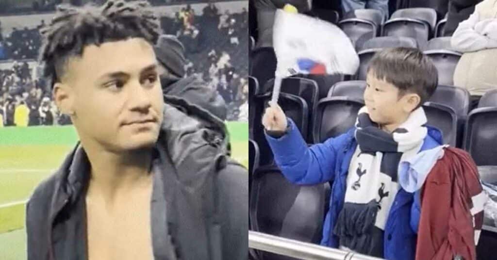 태극기 들고 자신을 부르는 한국 꼬마의 외침에 놀라운 태도를 보여준 아스톤 빌라 ‘왓킨스’이기타2023년 11월 27일축구토트넘전에서 결승골을 터트린 아스톤 빌라 공격수 왓킨스.경기 후 태극기를 든 한국 꼬마팬에게 다가가 유니폼 선물 ㄷㄷㄷ
