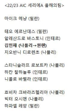 바이에른 뮌헨으로 이적했는데도 세리에A 시상식에서 이름이 호명되며 역대급 상을 받아버린 ‘김민재’이기타2023년 12월 05일축구최근 열린 세리에A 시상식에서 지난 시즌 리그 베스트 11으로 선정된 김민재 ㄷㄷㄷ진짜 아시아 통틀어도 전무한 커리어네…