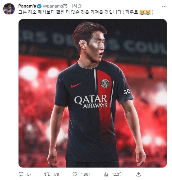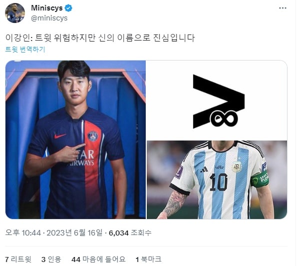 “진지하게 메시보다 낫다” 이강인의 A매치 활약을 지켜보다가 정신이 나가버린 PSG 팬들의 ‘찐텐 반응’이기타2023년 06월 17일해외축구메시 이상의 활약을 기대하는 팬얘는 걍 이강인을 GOAT로 만들어버림 ㅋㅋㅋ아직 입단도 안했는데 전설행 ㅋㅋ진짜 이강인 떡상 미쳤다 ㄷㄷ