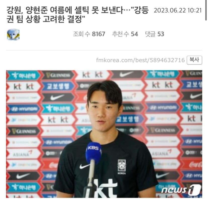 “지금은 안돼!” 강원이 셀틱에게 ‘미친 이적료’ 제의 받고도 양현준 안보내는 ‘이유’이기타2023년 06월 22일해외축구셀틱이 제의한 이적료는 무려 ’45억’ 진짜 역대급 이적룐데..강원은 강등 걱정에 지금 못보낸다는 입장.. 진짜 아쉽네