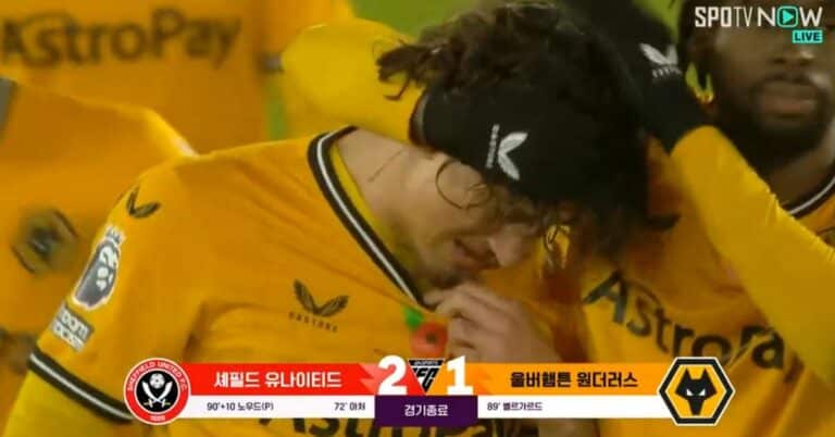 셰필드전에서 후반 추가시간을 앞두고 극적인 동점골에 성공한 울브스. 하지만 후반 교체 투입된 파비우 실바가 경기 종료를 앞두고 대형 사고를 쳤다. PK를 헌납하며 결국 경기 종료 직전 패배를 허용한 상황. 경기 종료 후 파비우 실바가 죄책감에 눈물을 터트렸다. 그러자 다가와 위로를…