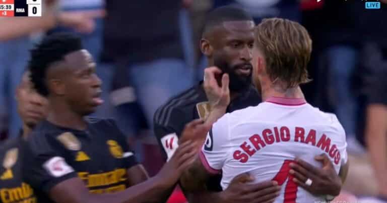 도발에 있어서 타의 추종을 불허하는 뤼디거. 하지만 이 분 앞에선 아무것도 아니다. 시작부터 뤼디거에게 광기 어린 웃음으로 제압하는 라모스 ㅋㅋㅋㅋㅋㅋ 그러더니 잠시 후엔 볼 꼬집기까지 차마 라모스라서 뭐라고 못하고 눈치보는 레알 마드리드 선수들 ㅋㅋㅋㅋㅋ 그래도 끝나고는 화해로 마무리. 레알 마드리드…