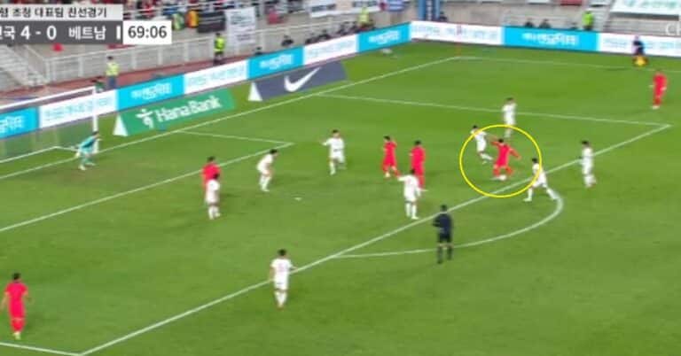 경기 도중 손흥민에게 나온 이기제의 패스미스. 확실히 요즘 K리그와 대표팀에서 폼이 좀 떨어진 것 같은 이기제. 빠르게 회복하길…