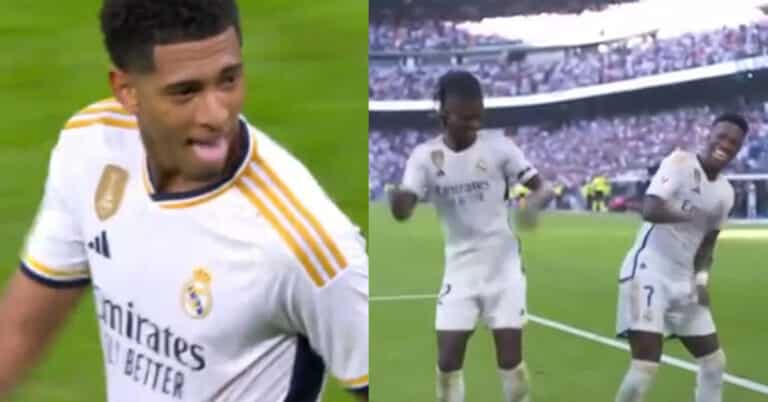 같은 경기에서 나온 벨링엄과 비닐신&카마빙가의 세레머니를 비교해보자. 먼저 벨링엄. 간지라는 게 제대로 터졌다. 그러면 비닐신&카마빙가는? 다른 의미로 터졌다. 그리고 이걸 본 벨링엄의 반응이 ㅋㅋㅋ “Two S*** Dancer”라며 욕하는 벨링엄 ㅋㅋㅋㅋㅋ 여기에 같이 추자며 응수하는 비닐신까지 어우야…