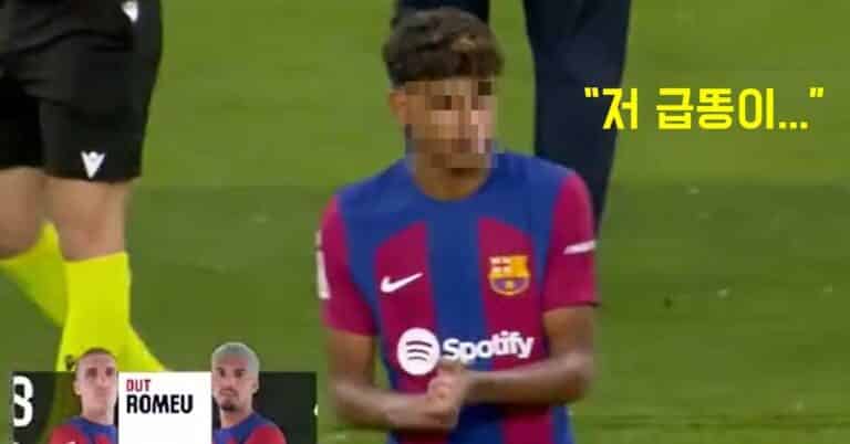 포르투와 바르샤 경기 도중 후반 32분에 진행된 VAR 상황. 칸셀루가 PK 박스 안에서 핸드볼 반칙을 범하며 VAR이 가동됐다. 판독 결과 고의성이 없어 PK는 취소됐는데 중요한 건 이게 아니다. VAR이 가동되는 동안 갑자기 그라운드에서 사라져버린 바르샤의 야말. 그러더니 잠시 후 야말이…